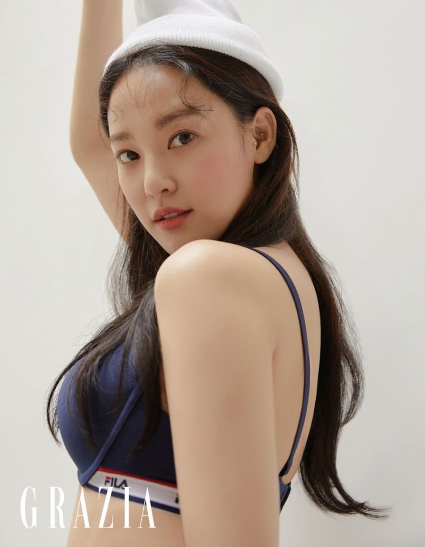 마지막으로 에메랄드빛 바다와 너무나 잘 어울리는 비키니 룩입니다. 물에 젖은 머리카락과 환한 미소가 보는 사람까지 시원하게 만드는데요.