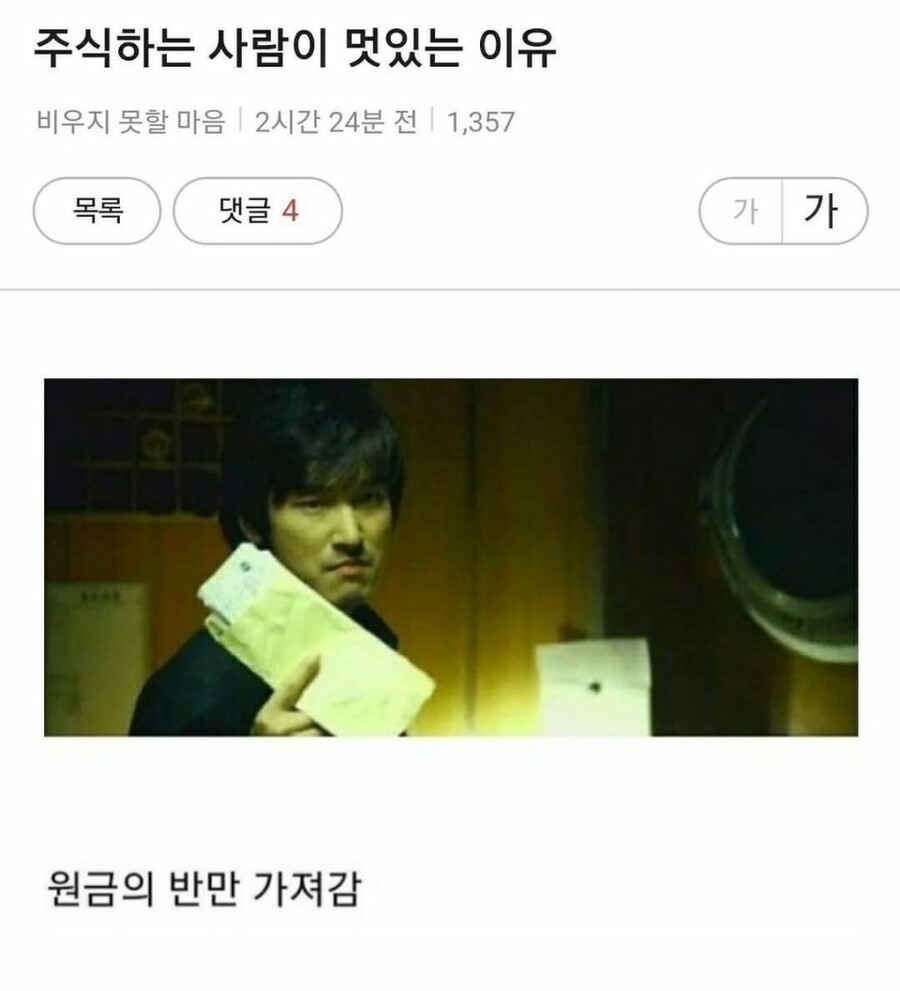 주식하는 사람이 멋 있는 이유 왜 주식하면 멋있을까? 상남자만 주식을 할 수 있지 이렇게 하는 건 주식하는 사람만 할 수 있어 ㅋㅋㅋㅋㅋ 뼈 때린다 공유하기 게시글 관리 킁킁닷넷 저작자표시 (새창열림) 에임 종이컵 제작 인쇄 전자담배액상 비트코인 가시눈뉴스 애니리뷰 & 게임공략략 SEO최적화 벤츠튜닝 Related Articles 가슴 큰 덕후는, 인싸 남자도 쉽게 꼬실 수 있다 탕수육 부먹 찍먹, 외국인도 서로를 혐오해 정자는 쾌감, 난자는 고통인 이유 여자들 논술 어떻게 본데, 글 잘 못 쓰던데
