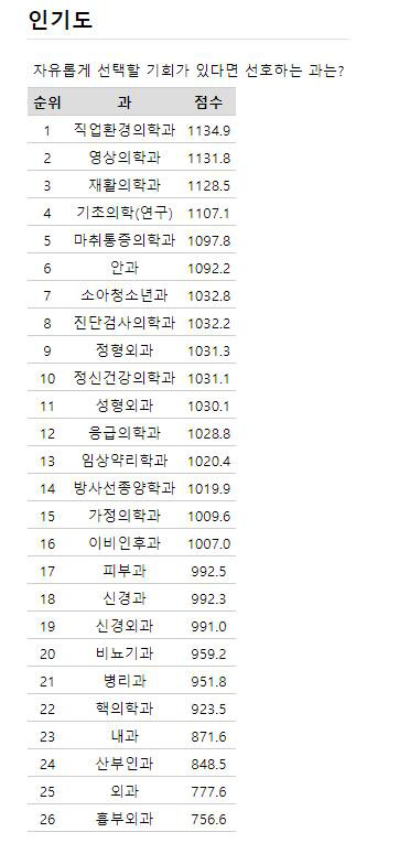 선택할 기회가 자유롭다면 선호하는 인기과와