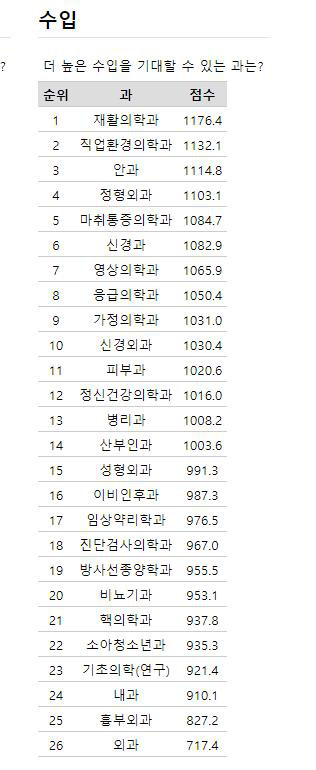 의사, 의대생이 많은 커뮤에서 조사한 인기 및 기대수입 최고는