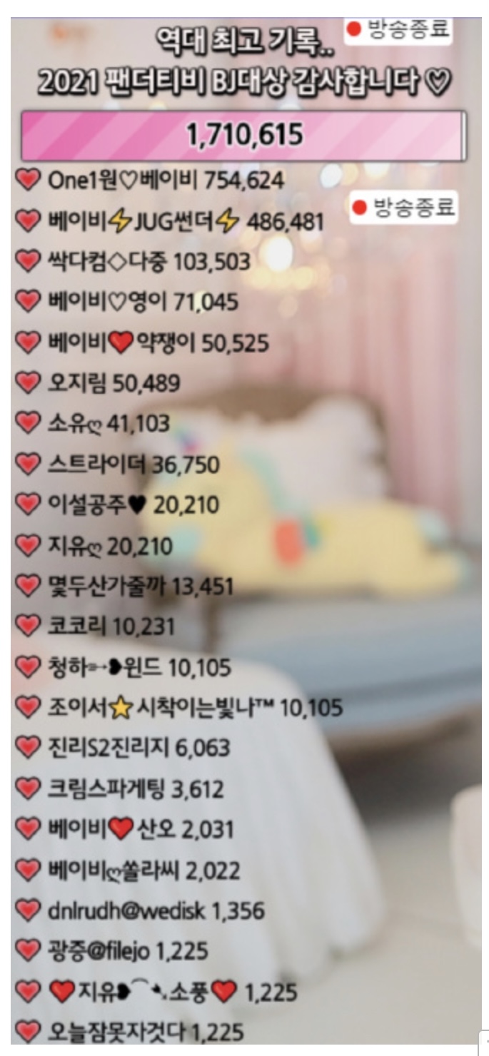 최근에는 연예인 출신도 팬더티비 갔다고 하던데