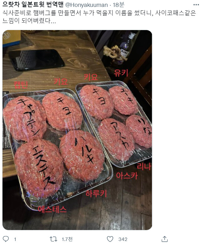 햄버그 준비 하는데, 사이코패스 같이 보이는 이유 식사로 햄버그 만들며 이름을 썼을 뿐인데 진짜 사이코패스 처럼 보인데.. 아니 다짐육에다가 저렇게 이름을 쓰면 어떻게 해!! ㅋㅋㅋㅋ 한니발 렉터인가... ㅋㅋㅋ 공유하기 게시글 관리 킁킁닷넷 에임 종이컵 제작 인쇄 전자담배액상 비트코인 가시눈뉴스 애니리뷰 & 게임공략략 SEO최적화 벤츠튜닝 Related Articles 목욕 후 벗고 나오는 선미 사진 여친 첫출근 커피 돌린 남자친구. 혼낸다 VS 칭찬한다 여친 신음소리 크다고 헤어진다는 남자, 위로 받는 이유 가슴 작은 여자, 가슴 파인 상의 입으면 안되는 이유