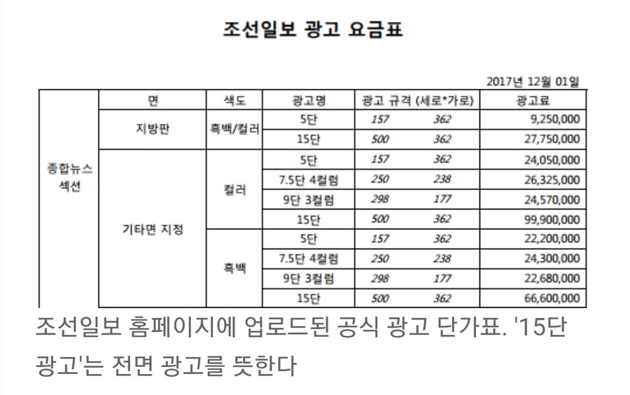 광고를 실지 않고 일반 광고를 실었다고.. 이에 조선일보측
