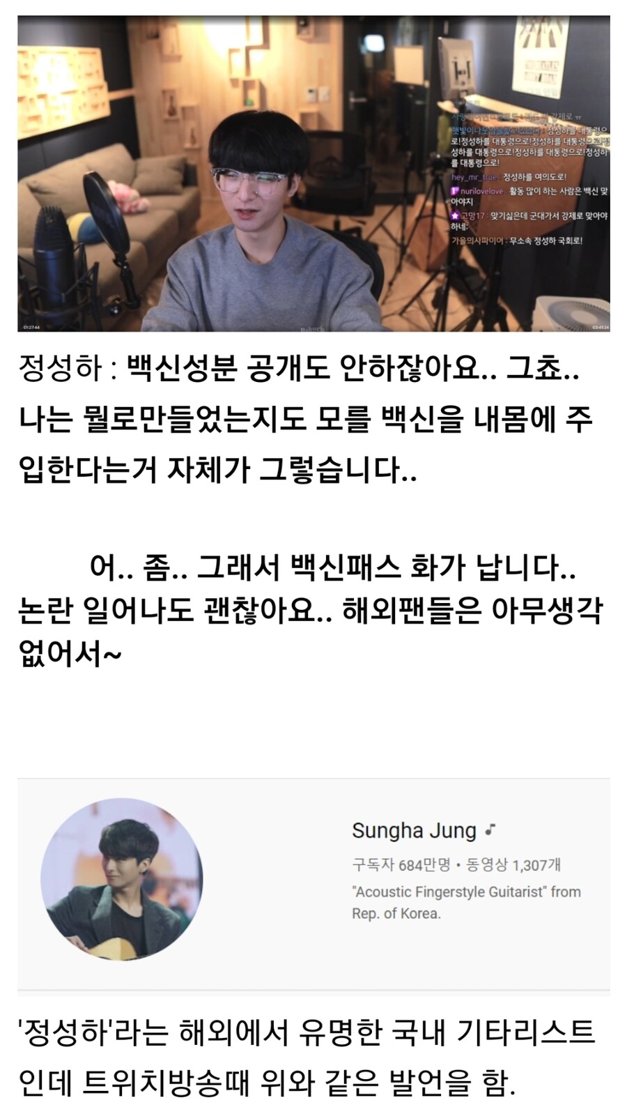 정성하 방송 중에 백신패스가 화가 난다고 하는