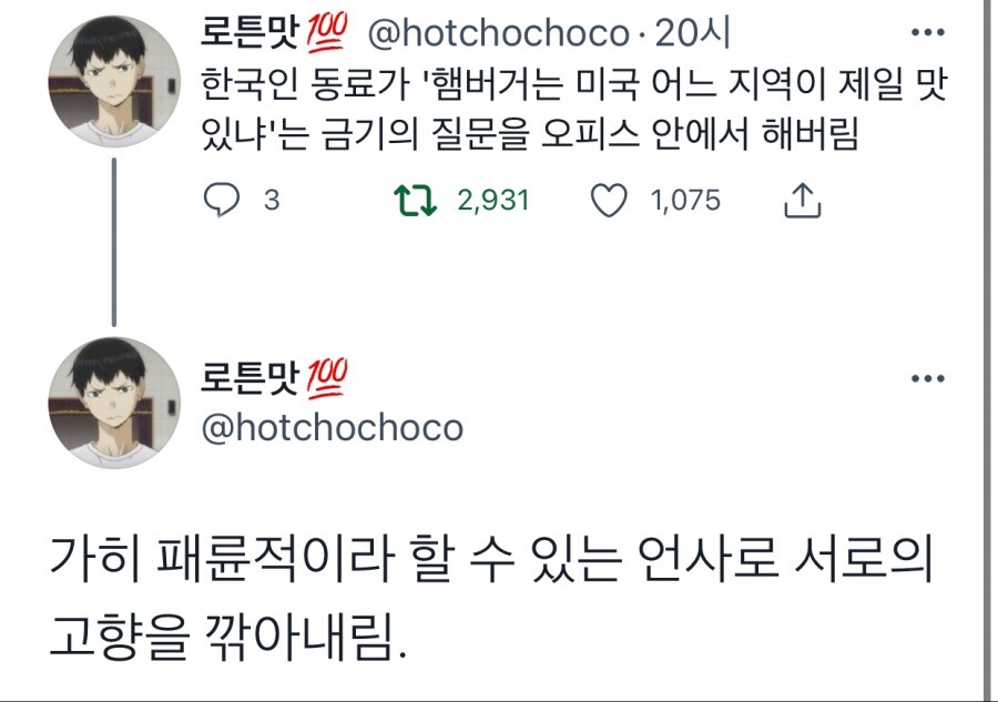 미국인 사이에 싸움 붙이기 지역 다른 미국인에게 이 주제를 던지면 미국 땅이 워낙 넓고, 지역마다 각각 프랜차이즈가 다르다보니까 이걸 미국인들 사이에 던지면 싸움이 벌어지는 듯 ㅋㅋㅋ 공유하기 게시글 관리 킁킁닷넷 전자담배액상 비트코인 가시눈뉴스 애니리뷰 & 게임공략략 SEO최적화 벤츠튜닝 Related Articles UDT 주사 바늘 무서워 하는 이유 차범근 독일에서 인종차별 당한 썰 갓겜만 사주던 아빠, 돌아가신 후 청소를 하다가 발견한 여자 때리는 쓰레기