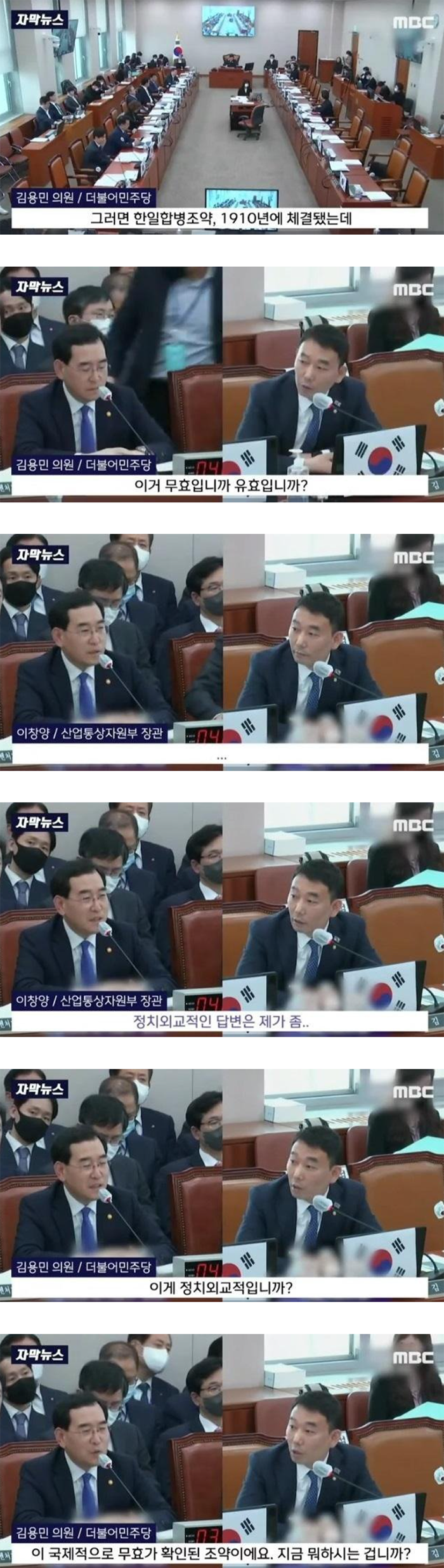 한일합병조약 유효일수도 있다는 장관 1910 한일합병조약이 유효 가능성도 있다는 이창양장관 이창양 산업통상자원부 장관이 김용민 의원의 1910 한일합병조약이 유효냐 무효냐고 묻자. 정치외교적 질문이라... 며 답변을 회피하다가 유효일 가능성도 있다고 발언... 아.. 한일합병에 대한 질문이 정치외교적이다... 일제시대도 정치외교적이라 말하기 힘든건가... 이건 좀.. 공유하기 게시글 관리 킁킁닷넷 종이컵 제작 인쇄 전자담배액상 가시눈뉴스 애니리뷰 & 게임공략략 SEO최적화 벤츠튜닝 Related Articles 제임스 시노트 신부가 말한, 한국 경제의 기적의 그림자 이국종 교수 행복에 대한 명언, SNS 세대가 들었으면 웹소설 표지 40만원 일러레, 가성비 일러레인 이유 고든램지 햄버거 가격 상황, 25만원치 시키면?