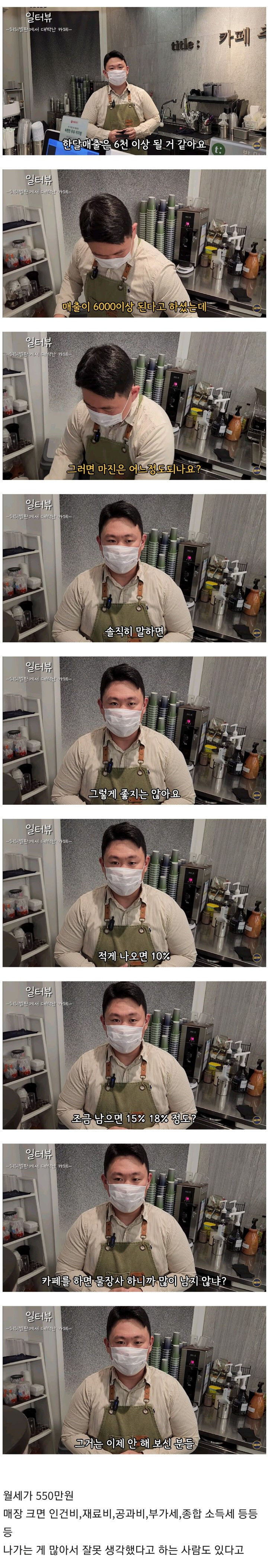 카페가 레드오션인 이유, 6천만원 매출 카페의 순수익은? 한달매출 6천만원, 카페 한달 순수익은? 카페 수익은 매출에 비해서 진짜 짜다.. 공유하기 게시글 관리 킁킁닷넷 종이컵 제작 인쇄 전자담배액상 가시눈뉴스 애니리뷰 & 게임공략략 SEO최적화 벤츠튜닝 Related Articles 식사하다 사람살린 경찰 커플 선사시대, 수렵시대 수명은 70세? 다문화가정 11세 딸 수빈이 보고, PD가 운 이유 스쿼트 여자 몸매에 미치는 영향
