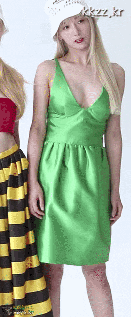 에이핑크 보미 가슴 깊게 파인 초록 드레스 5장