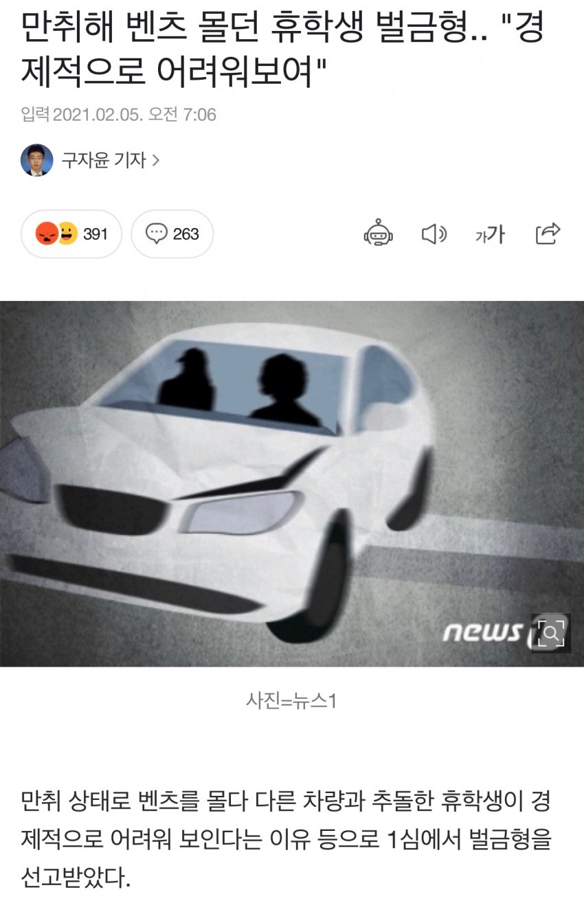 만취 벤츠운전 휴학생, 벌금형 선고 받은 이유? 벤츠 음주운전 한 휴학생, 실형 선고 안된 이유 말이 돼? 이건 진짜 너무 한거 아냐? 아니 벤츠를 모는데 경제적으로 어려워 보여??? 진짜 너무한다... 너무해.... 이것도 판사가 음주운전 사고를 당해서 큰 일을 당해봐야 큰일이다 싶어서 형량이 올라가려나 진짜 공유하기 게시글 관리 킁킁닷넷 에임 종이컵 제작 인쇄 전자담배액상 비트코인 가시눈뉴스 애니리뷰 & 게임공략략 SEO최적화 벤츠튜닝 Related Articles 인천공항 보안검색요원 란제리 몸매, 인스타 주소 친구 아버지 죽음에 패드립치고, 씹선비라고 욕하는 인간 신라호텔 조식, 치킨, 빙수 등 가격 정보 100kg > 50kg 다이어트 성공한 여자 몸매 변화
