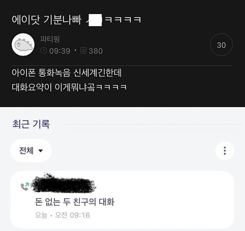 에이닷 통화녹음 기분 나쁜 이유 에이닷 통화녹음 대화요약이... ㅋㅋㅋㅋ 이렇게 나오면 기분이 나쁠만 하다 뭔 대화했는지 궁금한데 풀 버전 좀 풀어주라 공유하기 게시글 관리 킁킁닷넷 에임 종이컵 제작 인쇄 전자담배액상 비트코인 가시눈뉴스 애니리뷰 & 게임공략략 SEO최적화 벤츠튜닝 Related Articles 산노미야츠바키 직업 선택한 이유 코어 힘 쩌는 여자의 하체 레전드 헬갤 어깨 레전드.. 어디서부터 어깨가 아닌거야.. 즉석복권 5억, 160만원으로 당첨된 사람