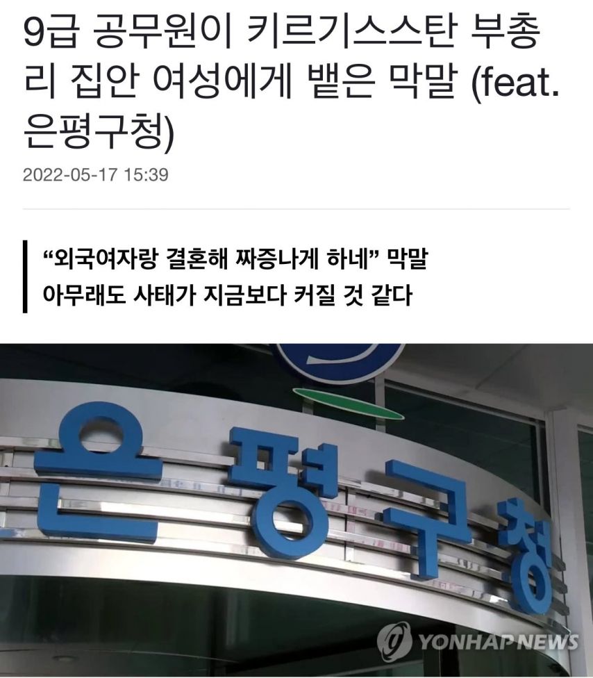 국제결혼한 키르기스스탄 부총리집안 여성에게, 은평구청 공무원의 막말