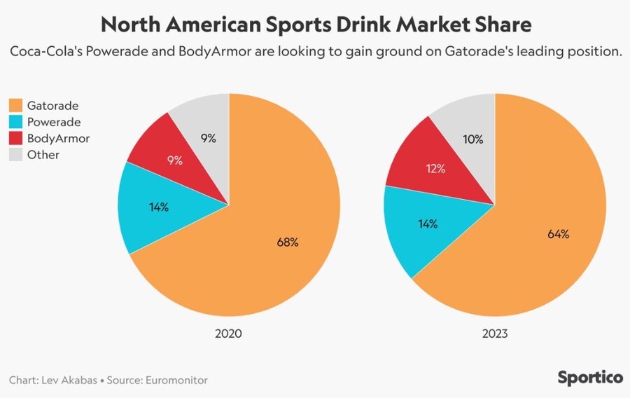 북미 이온음료 시장점유율 1위 펩시가 압도적? 이온음료 북미 시장점유율 1위 기업은 펩시, 2위는 코카콜라 북미 이온음료 시장점유율 표. 진짜 펩시가 압도적이네.... 점유율이 무려 64%, 2위는 코카콜라인데 14%. 그런데 이름 들으면 당연하다고 생각되는게. 1위 펩시 게토레이, 2위 코카콜라 파워에이드, 3위 바디아머 12%, 4위이하 10% 게토레이는 이온음료 시장개척자 포지션에 가까워서 추격자들이 앞서는게 쉽지 않지 공유하기 게시글 관리 킁킁닷넷 에임 종이컵 제작 인쇄 전자담배액상 비트코인 가시눈뉴스 애니리뷰 & 게임공략략 SEO최적화 벤츠튜닝 Related Articles 워렌버핏으로 보는, 개미 주식에서 맨날 잃는 경우 여자와 여군의 차이, 멋있다. 이런 분이 진짜 여군이지 한의원피부과 악플에, 의사가 욕 먹는 이유 중소기업 CEO 맛집, 전국 지역별 중소기업 CEO 선정한 맛집 리스트