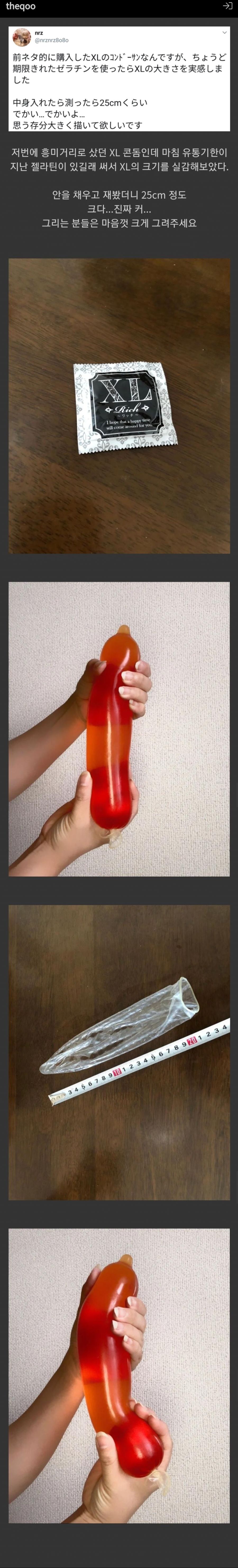 XL사이즈 콘돔 크기, 그리고 여초 반응 최대사이즈 XL사이즈 콘돔 XL 사이즈 콘돔 사진인데 와 진짜 크구나.. 저게 들어가는게 있다는게 참 놀랍다 수요가 있으니 판매를 하는거 아니야.. 그리고 여초 사이트 중 하나인 더쿠에서의 반응 공유하기 게시글 관리 킁킁닷넷 저작자표시 (새창열림) 종이컵 제작 인쇄 전자담배액상 가시눈뉴스 애니리뷰 & 게임공략략 SEO최적화 벤츠튜닝 Related Articles 속을 전부 보여주는 여자 민초단 최대 난제, BTS RM 민트초코에 대한 의견 미국인 렙틸리언 믿는 이유 귀멸의칼날 what if 만약 형님이 참을 수 있었다면