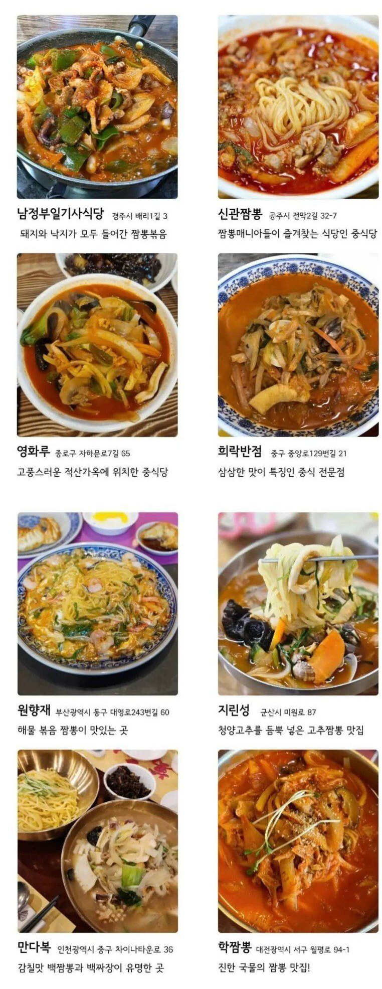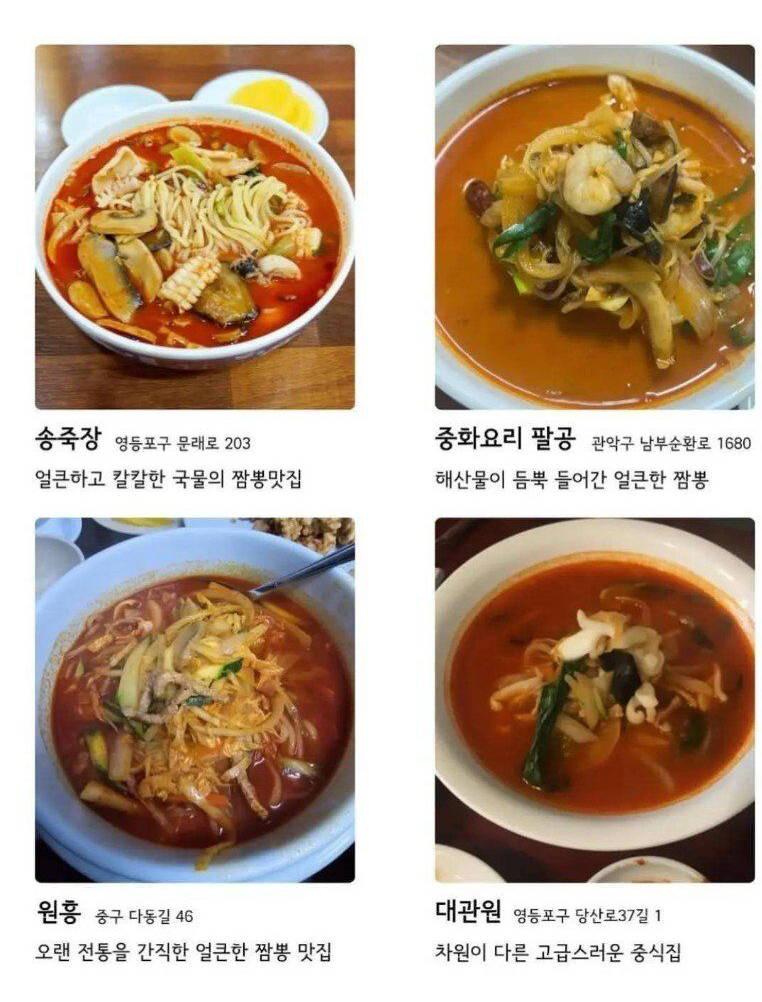 전국 짬뽕 맛집 36곳 / 서울 17, 강원도 4, 군산 2 짬뽕 맛집 36곳 서울 17집. 강원도 4집. 군산 2집. 인천 1집 등 역시 서울이 가장 많고, 생각보다 강원도가 많고. 인천은 차이나타운이 있음에도 적고, 군산도 인구에 비해서 많은 듯. 하긴 군산은 짬뽕이 유명하니. 공유하기 게시글 관리 킁킁닷넷 에임 종이컵 제작 인쇄 전자담배액상 비트코인 가시눈뉴스 애니리뷰 & 게임공략략 SEO최적화 벤츠튜닝 Related Articles 한국 제과명장 14인 제과점과 대표빵. 제과명장의 빵집은 어디? 은하수 명소 11곳 - 전라도 지역 (군산/고흥/광양/남원/부안/무주/장흥/영암) 만화) 딸은 양궁선수에서 엄마가 되면 고슴도치가 된다 인스타 비키니녀 사진모음 @loeweruby1